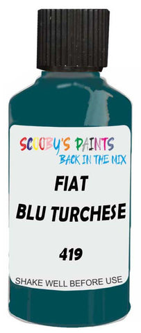 Professionally mixed touch-up paint matched to Fiat factory colour 419 – Blu Turchese for model years 1965–1976. Ideal for repairing stone chips, light scratches and minor blemishes while helping to prevent corrosion.