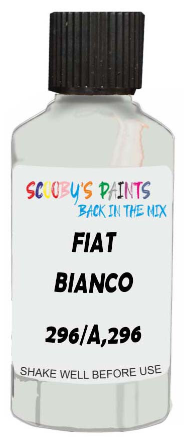 Professionally mixed touch-up paint matched to Fiat factory colour 296/A,296 – Bianco Gelato for model years 2013–2022. Ideal for repairing stone chips, light scratches and minor blemishes while helping to prevent corrosion.