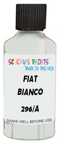 Professionally mixed touch-up paint matched to Fiat factory colour 296/A – Bianco Divino for model years 2007–2018. Ideal for repairing stone chips, light scratches and minor blemishes while helping to prevent corrosion.