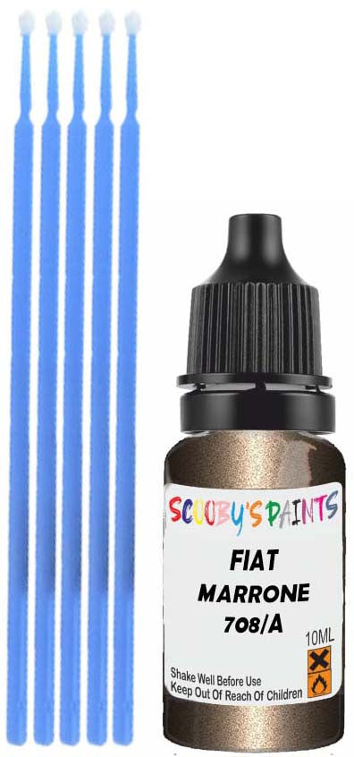 Professionally mixed touch-up paint matched to Fiat factory colour 708/A – Marrone Vigoroso Metallic for model years 2008–2012. Ideal for repairing stone chips, light scratches and minor blemishes while helping to prevent corrosion.