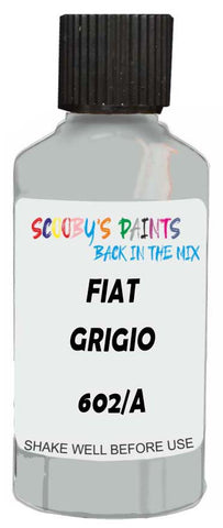 Professionally mixed touch-up paint matched to Fiat factory colour 602/A – Grigio Perbene Metallic for model years 2007–2011. Ideal for repairing stone chips, light scratches and minor blemishes while helping to prevent corrosion.