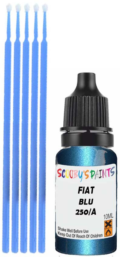 Professionally mixed touch-up paint matched to Fiat factory colour 250/A – Blu Cosmopolitan Metallic for model years 2004–2005. Ideal for repairing stone chips, light scratches and minor blemishes while helping to prevent corrosion.