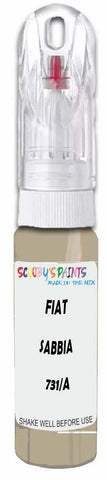 Professionally mixed touch-up paint matched to Fiat factory colour 731/A – Sabbia Metallic for model years 2006–2008. Ideal for repairing stone chips, light scratches and minor blemishes while helping to prevent corrosion.