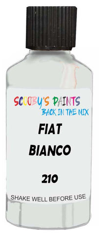Professionally mixed touch-up paint matched to Fiat factory colour 210 – Bianco for model years 1988–2005. Ideal for repairing stone chips, light scratches and minor blemishes while helping to prevent corrosion.
