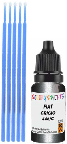 Professionally mixed touch-up paint matched to Fiat factory colour 446/C – Grigio Colosseo Metallic for model years 2016–2019. Ideal for repairing stone chips, light scratches and minor blemishes while helping to prevent corrosion.