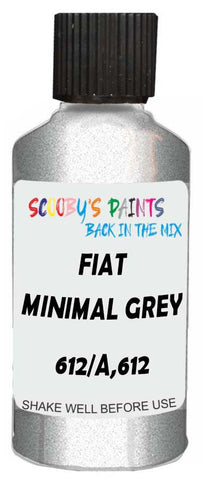 Professionally mixed touch-up paint matched to Fiat factory colour 612/A,612 – Minimal Grey Metallic for model years 2013–2023. Ideal for repairing stone chips, light scratches and minor blemishes while helping to prevent corrosion.