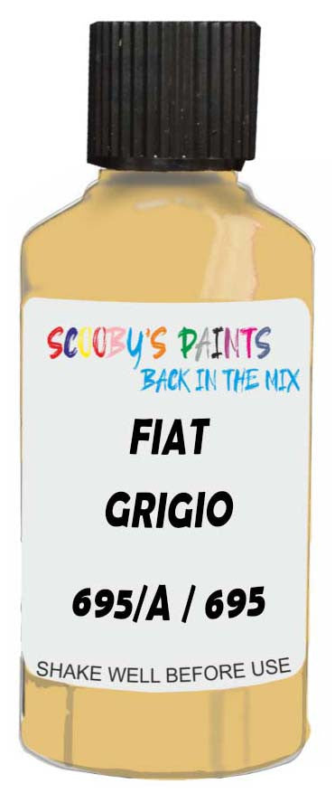 Professionally mixed touch-up paint matched to Fiat factory colour 695/A / 695 – Grigio Colosseo Metallic for model years 2014–2023. Ideal for repairing stone chips, light scratches and minor blemishes while helping to prevent corrosion.
