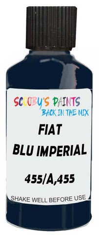 Professionally mixed touch-up paint matched to Fiat factory colour 455/A,455 – Blu Imperial for model years 1994–2021. Ideal for repairing stone chips, light scratches and minor blemishes while helping to prevent corrosion.
