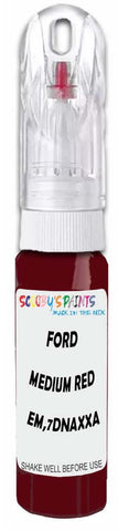 Professionally mixed touch-up paint matched to Ford factory colour Em,7Dnaxxa – Medium Red for model years 1990–1992. Ideal for repairing stone chips, light scratches and minor blemishes while helping to prevent corrosion.