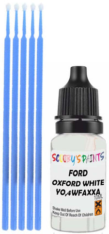 Professionally mixed touch-up paint matched to Ford factory colour Yo,4Wfaxxa – Oxford White for model years 1984–2003. Ideal for repairing stone chips, light scratches and minor blemishes while helping to prevent corrosion.