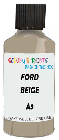 Professionally mixed touch-up paint matched to Ford factory colour A3 – Beige Metallic for model years 1996–1997. Ideal for repairing stone chips, light scratches and minor blemishes while helping to prevent corrosion.