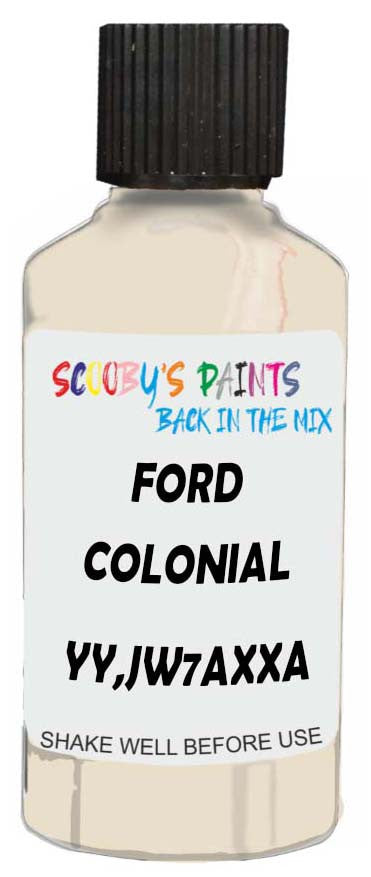 Professionally mixed touch-up paint matched to Ford factory colour Yy,Jw7Axxa – Colonial White for model years 1990–1996. Ideal for repairing stone chips, light scratches and minor blemishes while helping to prevent corrosion.