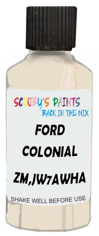Professionally mixed touch-up paint matched to Ford factory colour Zm,Jw7Awha – Colonial White for model years 1995–1997. Ideal for repairing stone chips, light scratches and minor blemishes while helping to prevent corrosion.