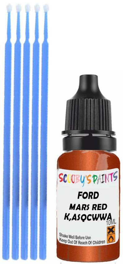 Professionally mixed touch-up paint matched to Ford factory colour K,Asqcwwa – Mars Red Metallic for model years 2010–2013. Ideal for repairing stone chips, light scratches and minor blemishes while helping to prevent corrosion.